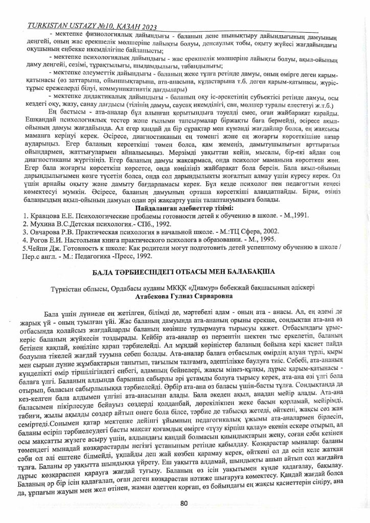 БАЛАНЫҢ БАЛАБАҚШАҒА БЕЙІМДЕЛУІ
