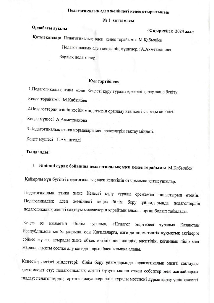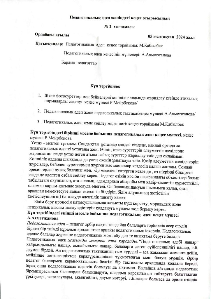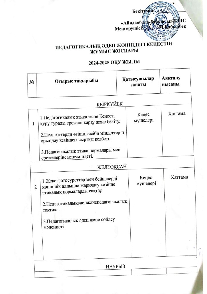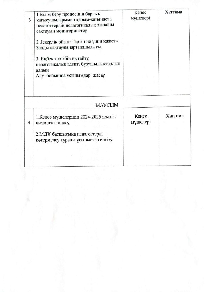 КҮН ТӘРТІБІ, ОҚУ ІС-ӘРЕКЕТ КЕСТЕСІ