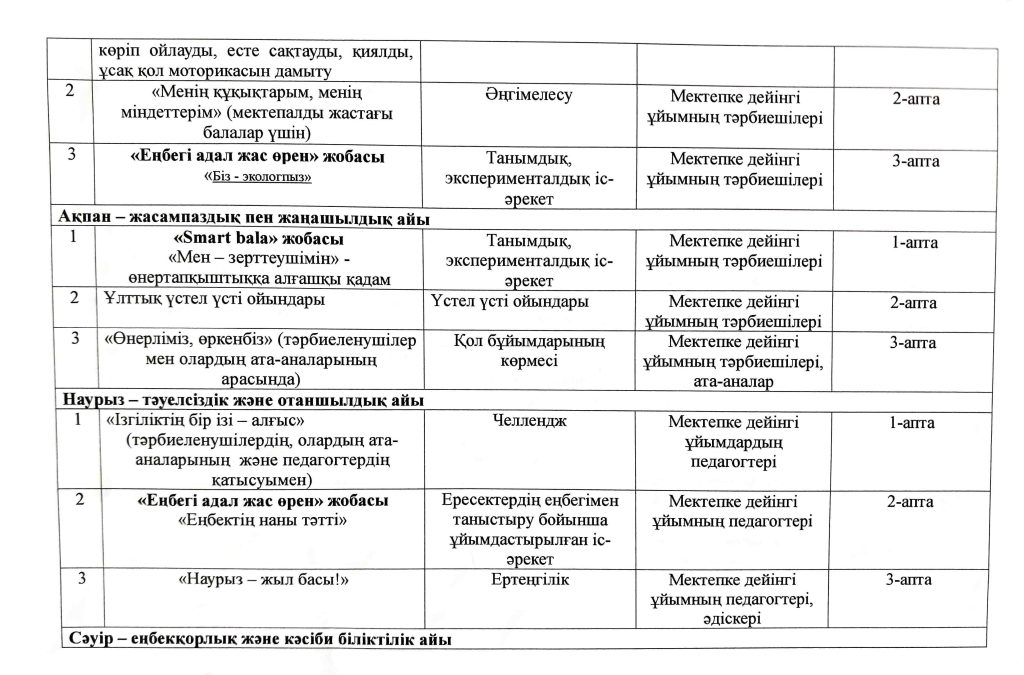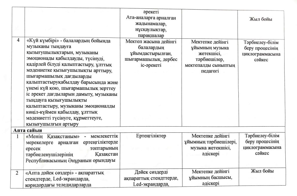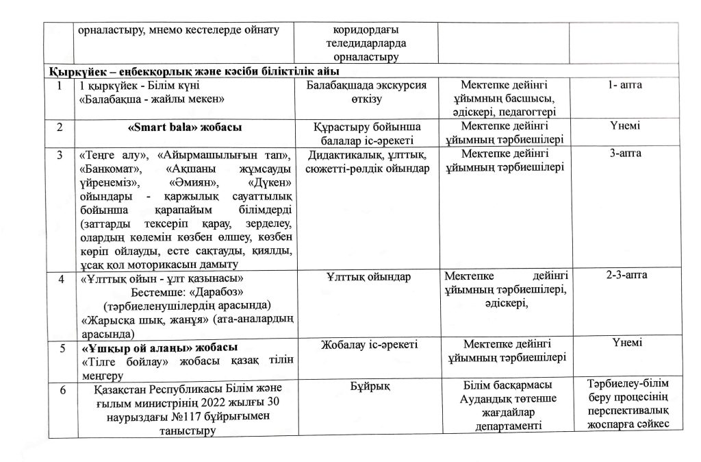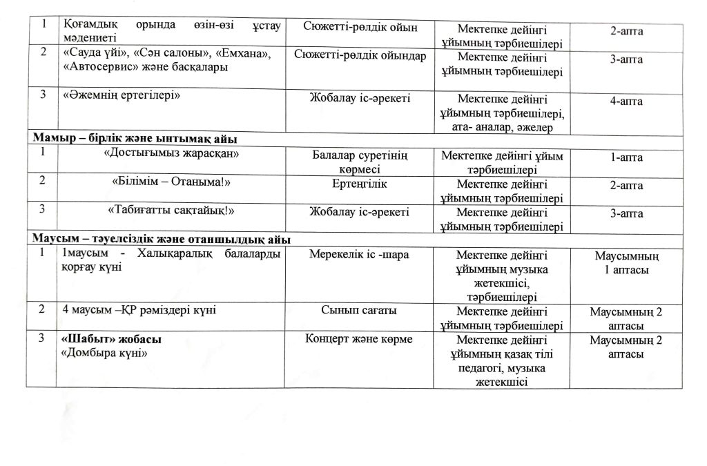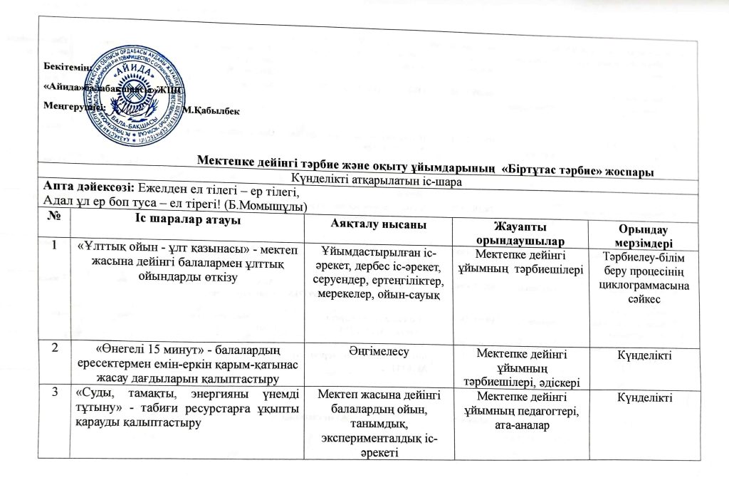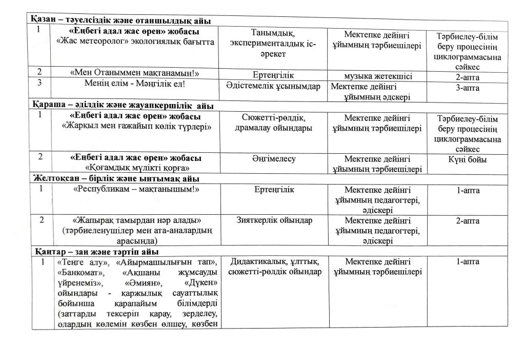 «БІРТҰТАС ТӘРБИЕ» БАҒДАРЛАМАСЫ ІС-ШАРАЛАРЫ